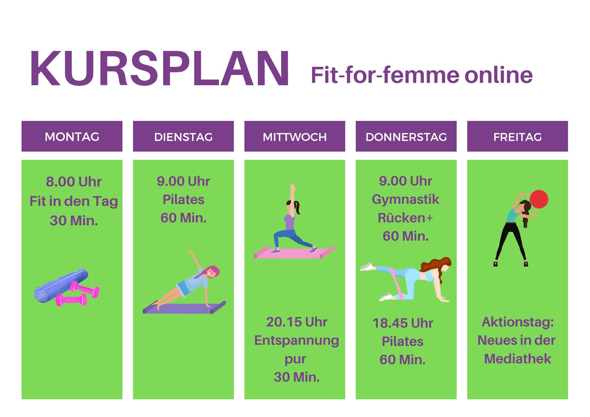 Ich bin LIVE für dich über Zoom da - mit einem Programm für jeden Fitnessgrad. Fühl dich wohl in der Gruppe mit anderen und habe Spaß an der Bewegung! Der Kursplan richtet sich nach den Bedürfnissen aller Mitglieder und wird immer wieder angepasst.